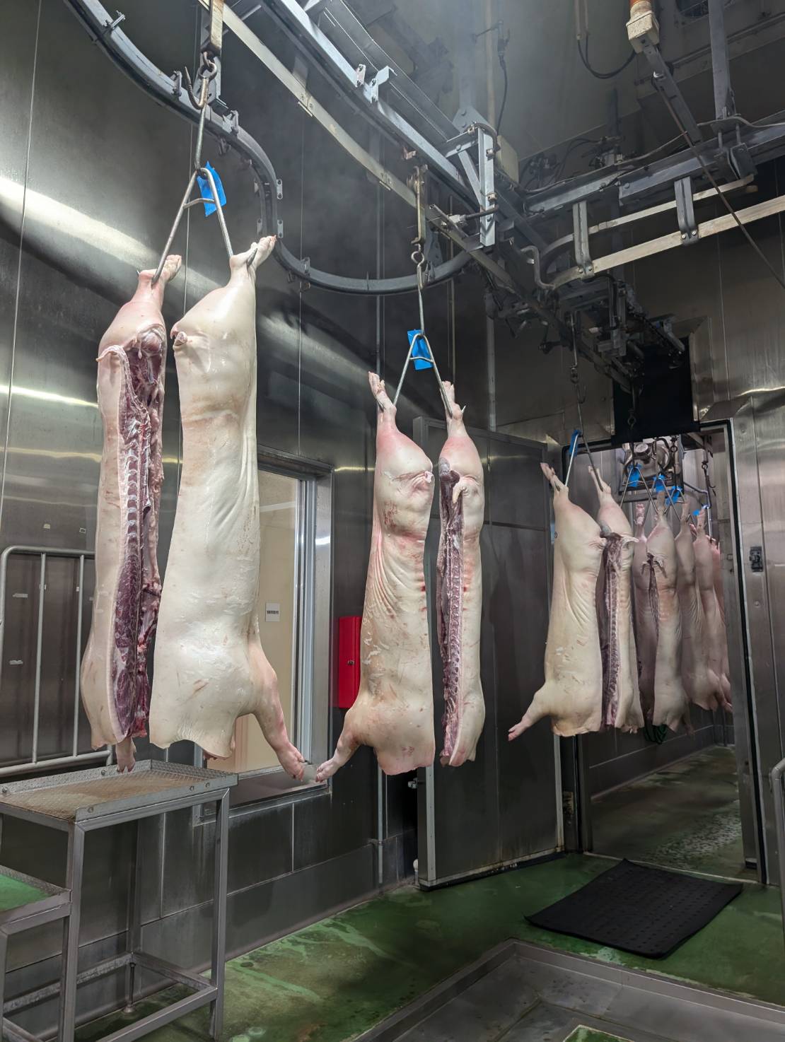 フック掛け作業とは豚にフックを掛け次の作業ラインへ移動する作業です。