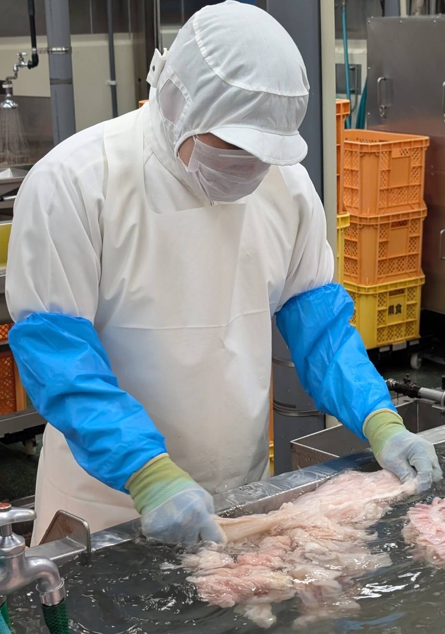 ⑥腱出し作業・フック掛け作業・毛剃り作業